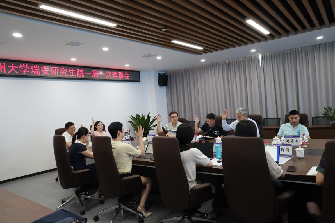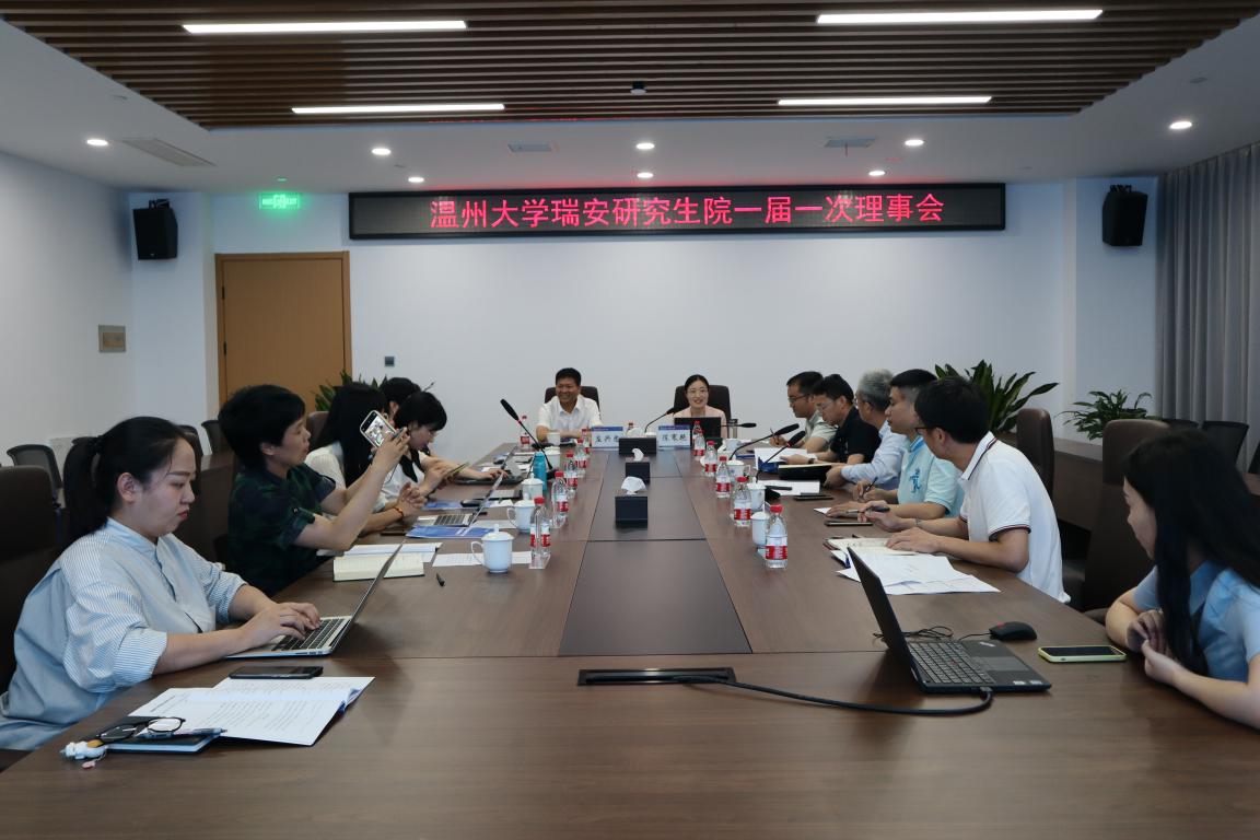 6月23日,欧洲杯-欧洲杯官网 一届一次理事会在瑞安市东新科创园2号楼四楼会议室顺利召开。温州大学党委副书记庄兴忠、瑞安市副市长陈寒艳,温州大学研究生院院长刘玉侠、国资处处长张若妤、瑞安研究生院院长冯爱新、瑞安市委组织部人才办专职副主任陈永操出席会议。瑞安研究生院党总支书记潘莉莉、院长助理张庆峰、综合办主任张吴湖,瑞安市科技局副局长蒋兆友、外国专家与合作交流科科长潘海兵,瑞安市人民政府办公室行政科副科长徐蓓蓓列席会议。